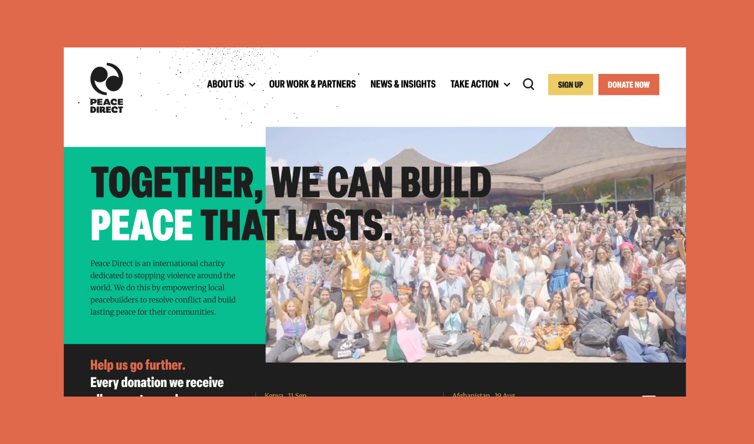 Peace Direct is building a safer and more just world for everyone. As a team we are honoured to work with such an impactful and inspiring charity, whose work and impact around the world is clear to see.